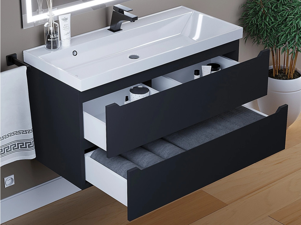 - Тумба с раковиной Uperwood Tanos матовая черная 100 см
