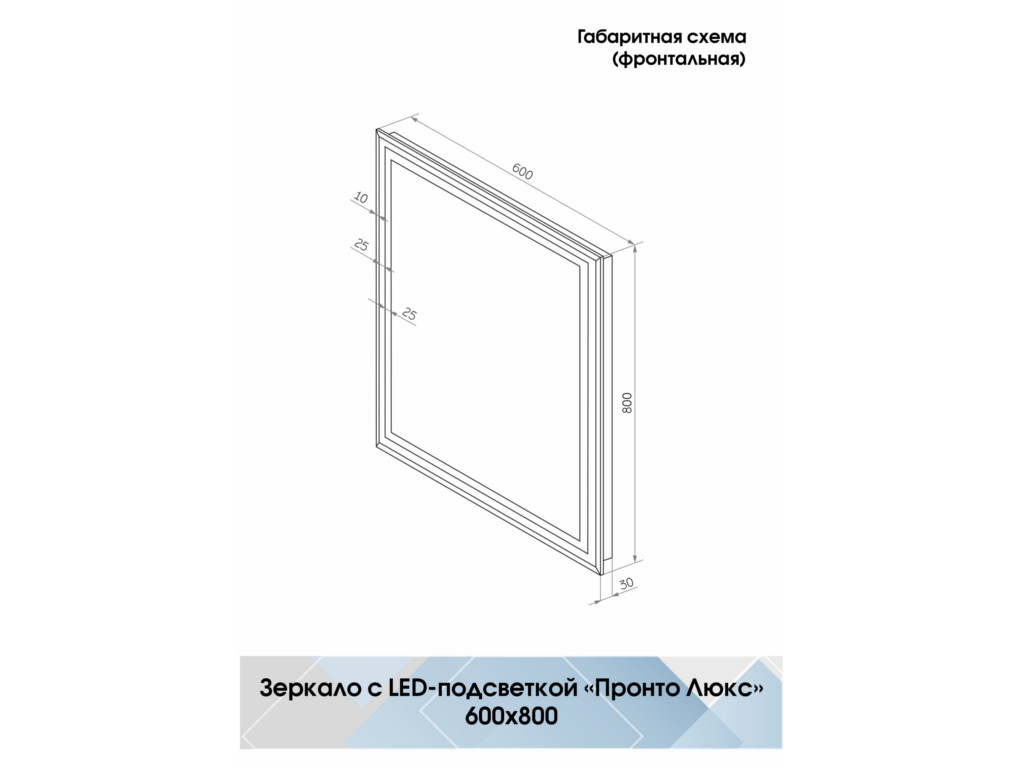 Подсветка фронтальная по периметру, с цветовой температурой 6000К – холодный белый, управление подсветкой механический