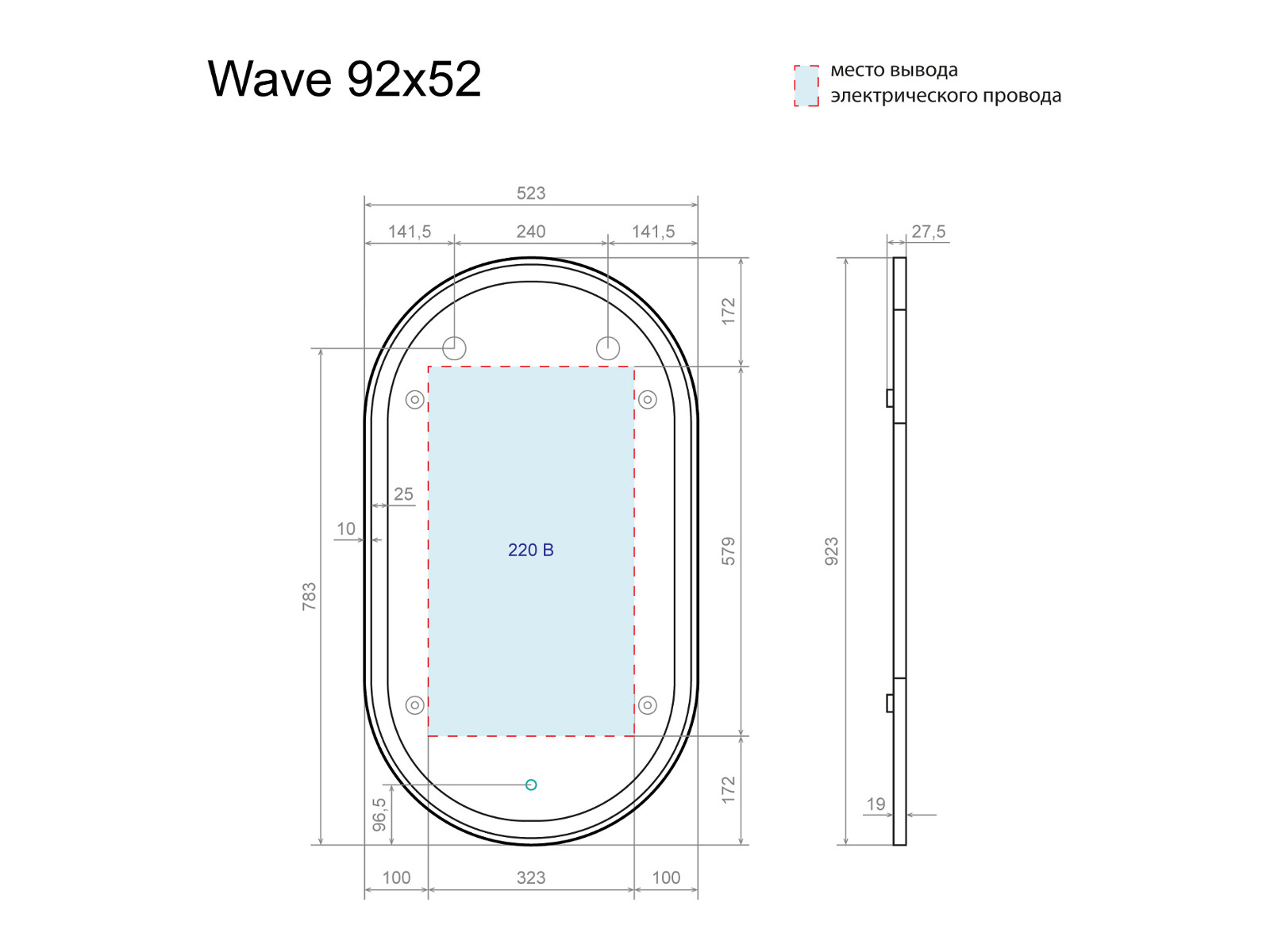 - Зеркало с подсветкой Wave 90