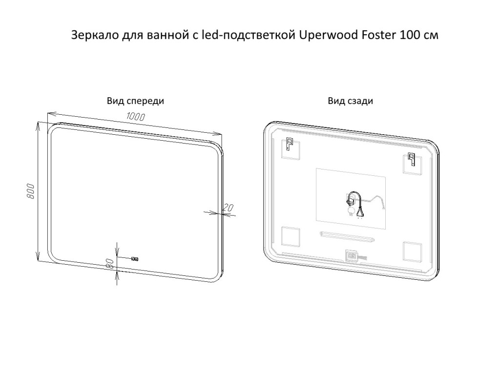 - Зеркало Uperwood Foster LED подсветка 100х80 см