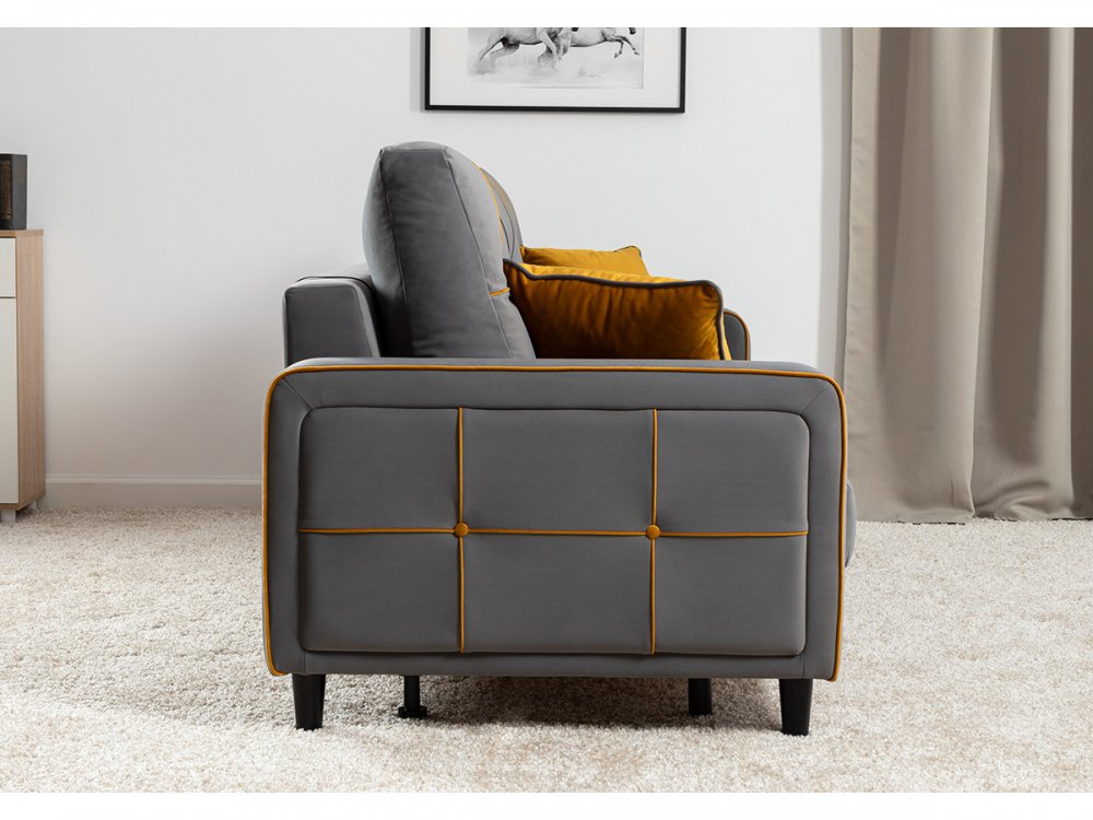 - По торцам подлокотников и думках контрастный декоративный кант.