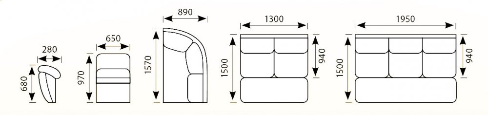 Элементы комплектуются по желанию заказчика и соединяются между собой на захваты диванные. Каждая секция комплектуется подушками на спинке. Детали каркасов элементов дивана крепятся между собой на скобу 38 и 50, в зависимости от толщины деталей.