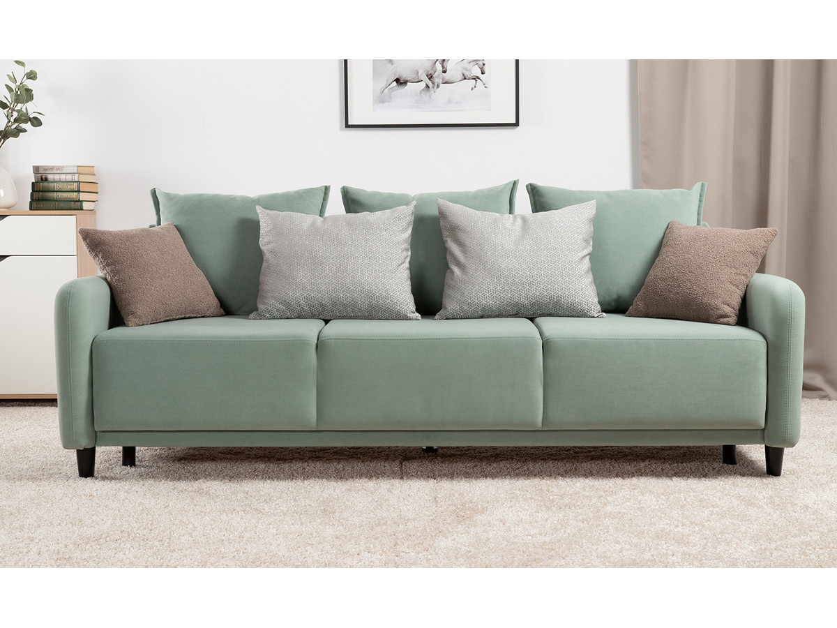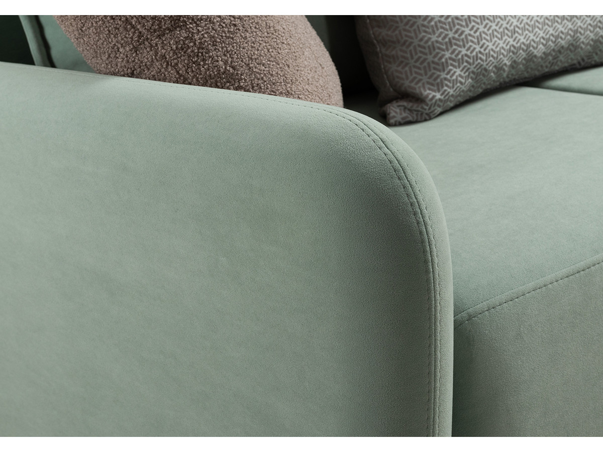 Декор: В комплекте 2 двусторонние декоративные подушки и 2 декоративные думки. Задняя спинка в ткани основы. Декоративные отделочные строчки по боковинам и сиденью