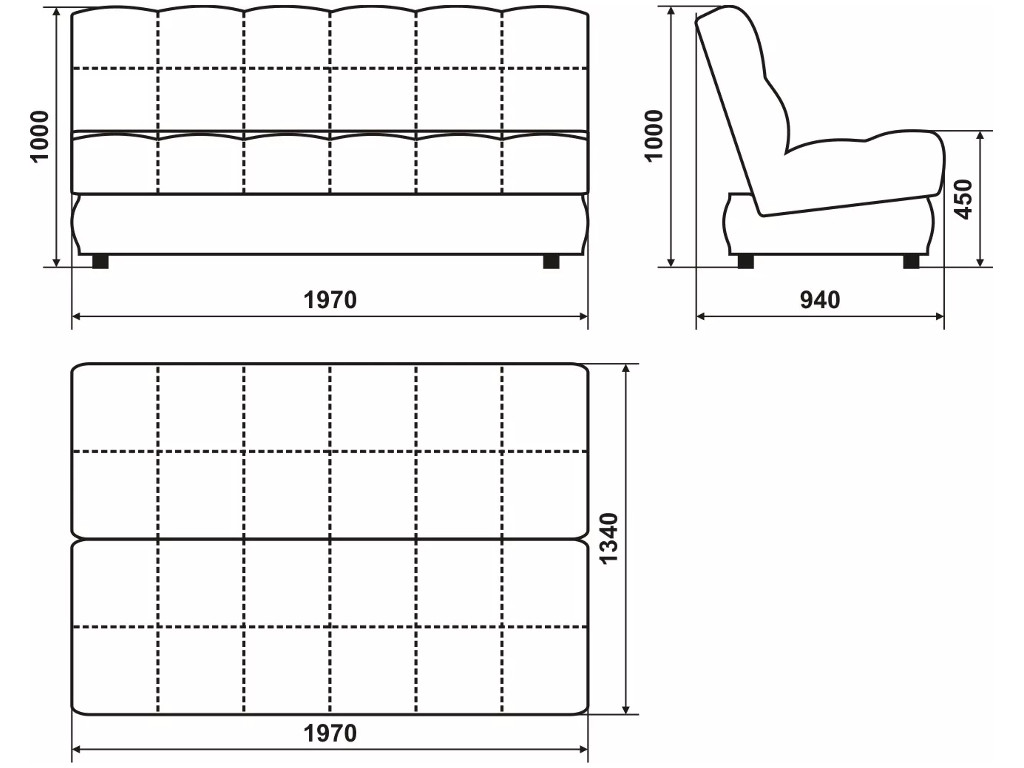 Размеры дивана (мм): 2040*940*1000