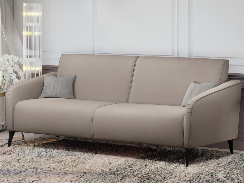 Декор: Спинка и сиденье разделяются пополам двойным кантом по центру и одинарным по краям сидения, для придания одной единой формы. Подлокотники с изгибом на лицевой стороне и мягкими закругленным углом со складками, с выраженным контрастным ровным кантом по внешнему контуру изделия и изогнутой линией канта.