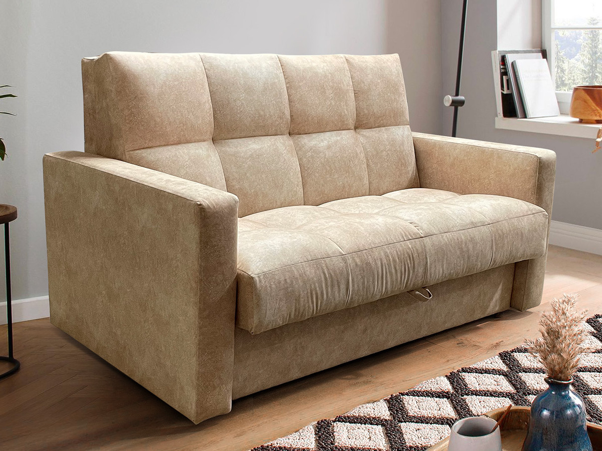 Диван Рэй Клетка 1400х2000 с прямыми подлокотниками бежевый велюр