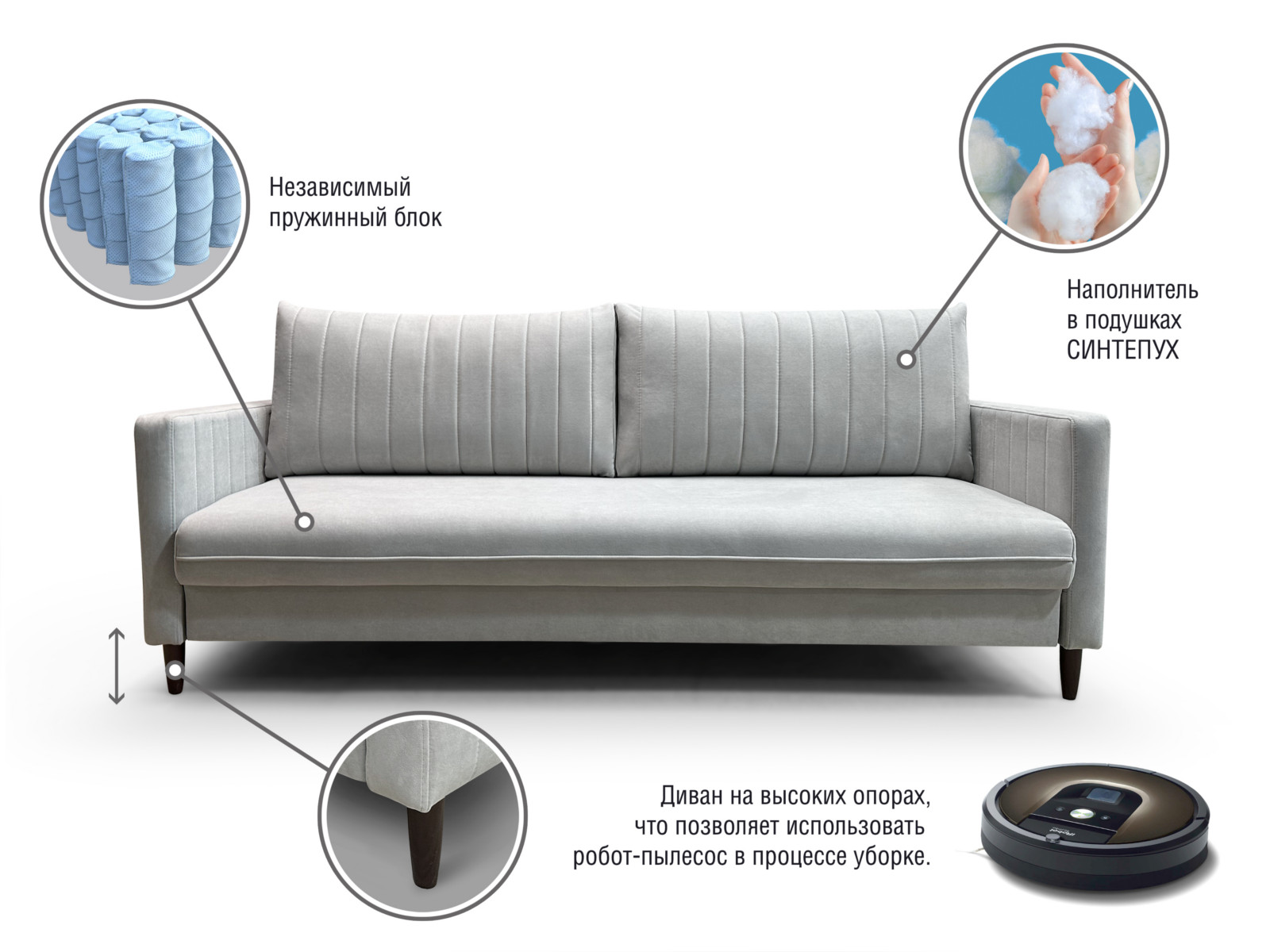 - Элементы сидения выполнены на независимом пружинном блоке, с применением высокоэластичного пенополиуретана.