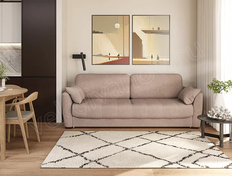 Наполнитель: в основании спального места независимый пружинный блок с дополнительным многослойным покрытием: термовойлок, высокоэластичный пенополиуретан толщиной 10, 20, 40, 90 мм пл.2238 и 2536, синтепон. На подлокотниках пенополиуретан толщиной 10, 20, 30 мм пл.2238, синтепон. Подушки спинки и декоративные (маленькие) подушки чехол на синтепоне, наполнитель комбинированный, гипоаллергенный пух «комфорель» с пенополиуретановой крошкой.