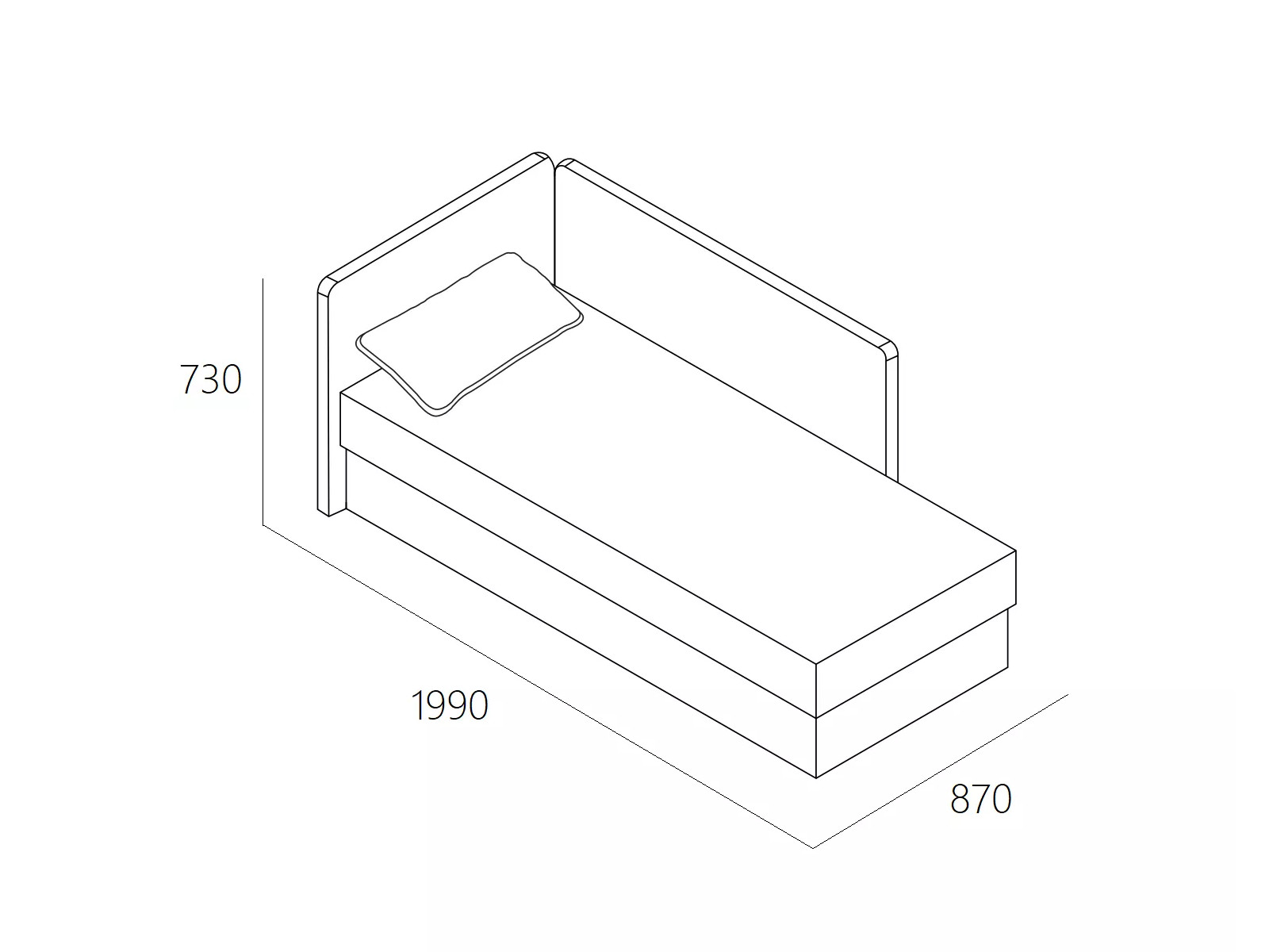 - Внутренние размеры бельевого ящика: 1850х700х200