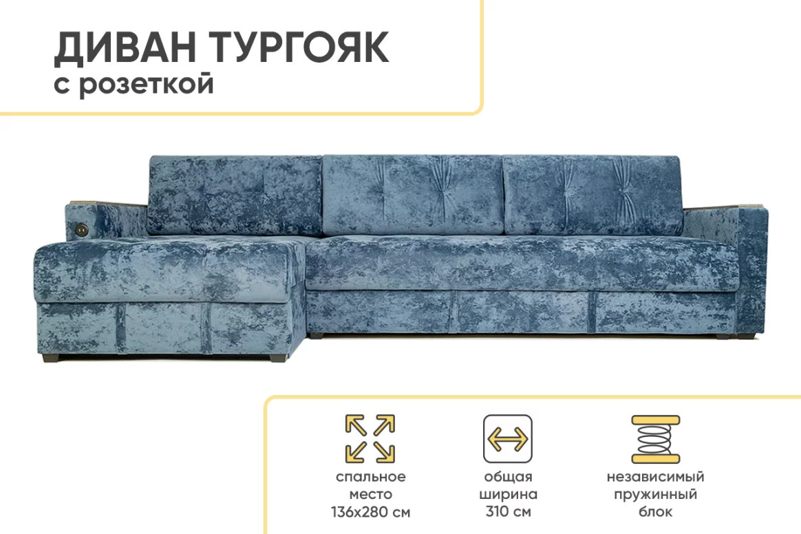 - Диван eгловой Тургояк c USB розеткой Темно-синий Ocean 978