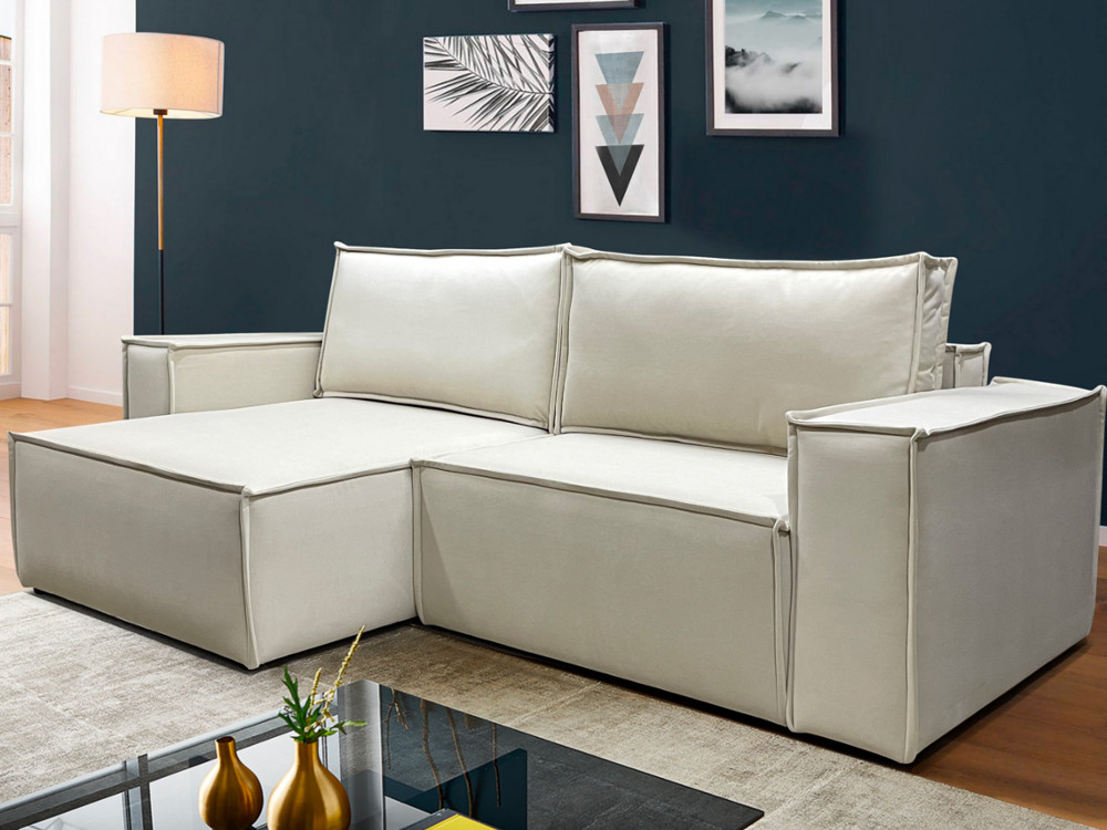 Диван с оттоманкой Бокс Vivaldi светло-бежевый велюр