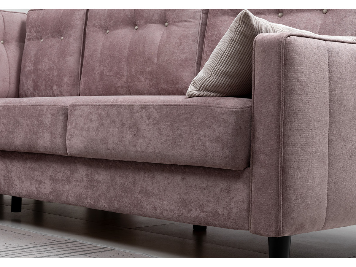 Подушки имеют трапециевидную форму, с утолщением к низу для комфорта посадки. Кант по всему периметру подушек, декоративные утяжки металлическими пуговицами, вертикальная стежка.
