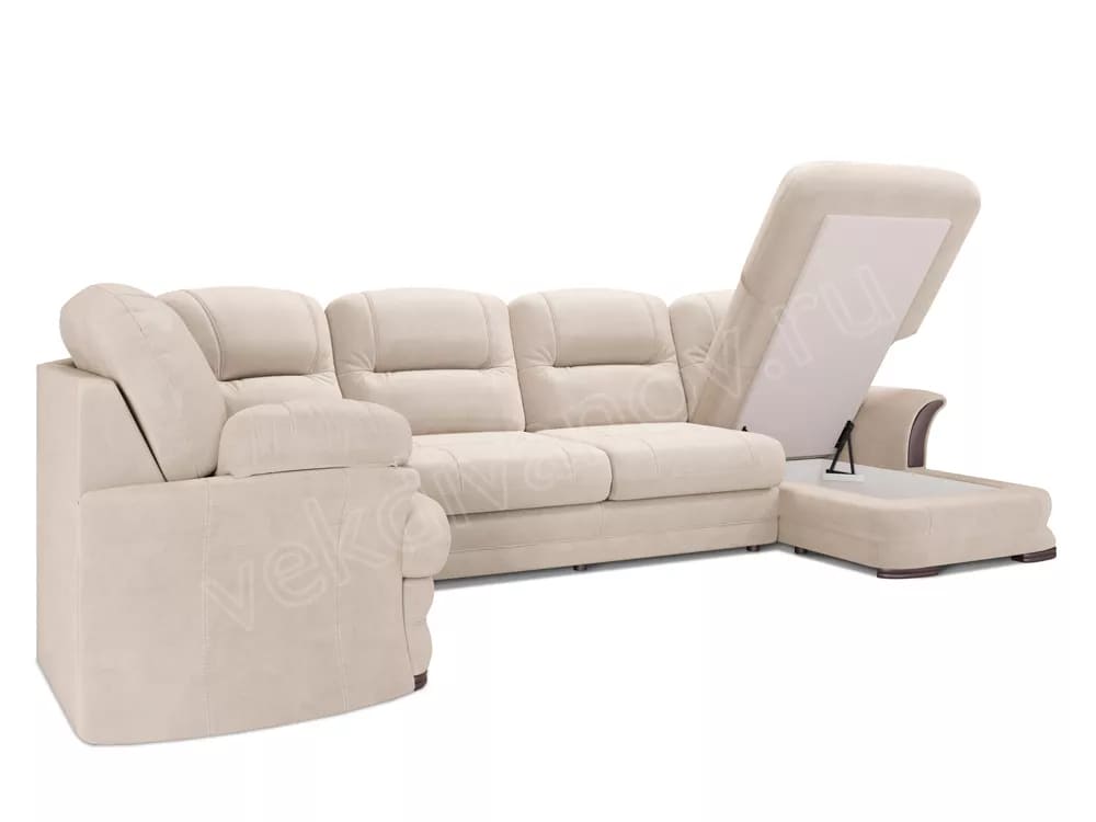 - Диван угловой большой П-образный Квин 6 без механизма Ultra Sand