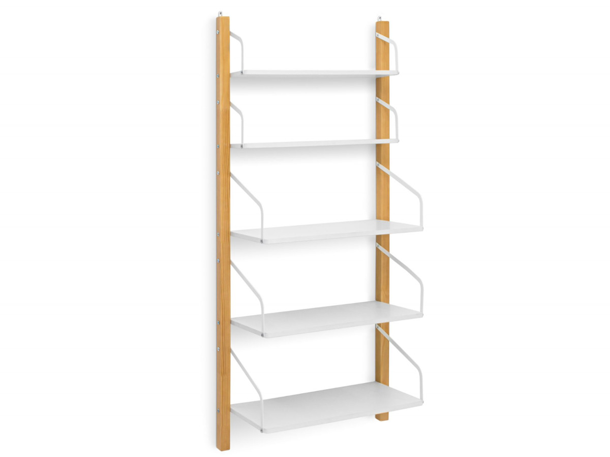 Конструкция детского стеллажа навесная и крепится к стене с помощью двух надежных металлических мебельных навесов. Стеллаж состоит из 5 полок. Высокопрочная конструкция стеллажа позволяет выдержать нагрузку на одну полку до 10 кг.