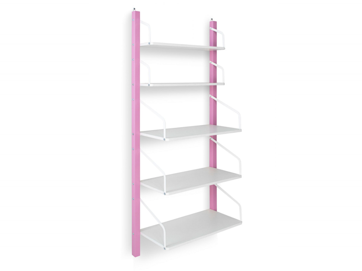 Конструкция детского стеллажа навесная и крепится к стене с помощью двух надежных металлических мебельных навесов. Стеллаж состоит из 5 полок. Высокопрочная конструкция стеллажа позволяет выдержать нагрузку на одну полку до 10 кг.