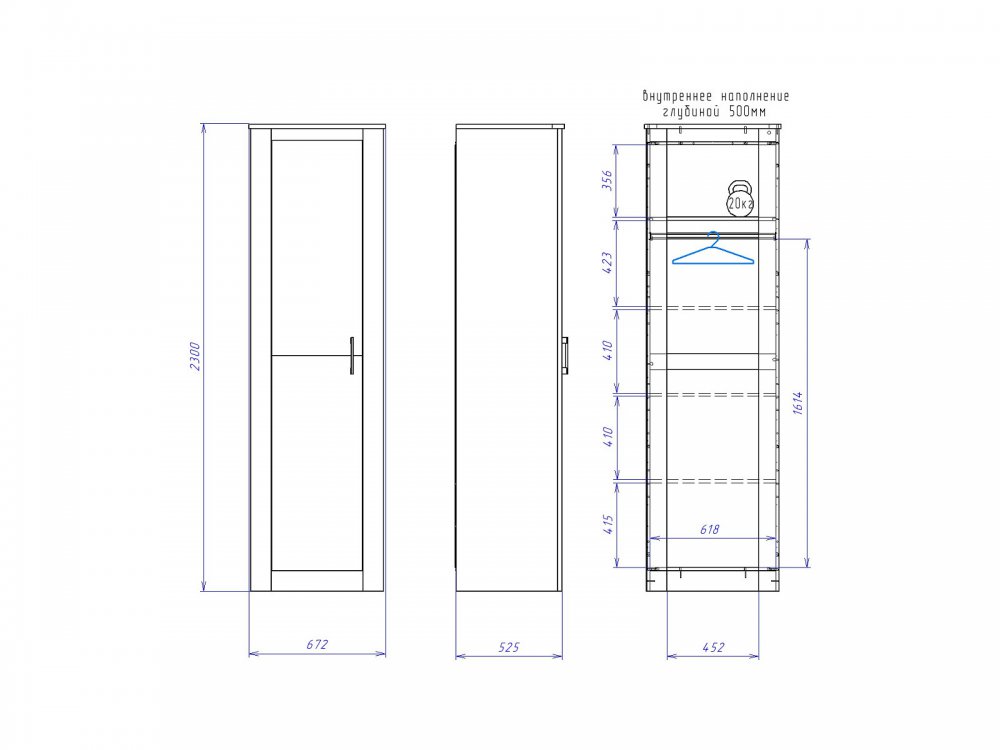 Шкаф 1-но дверный 2300 Денвер Риббек серый