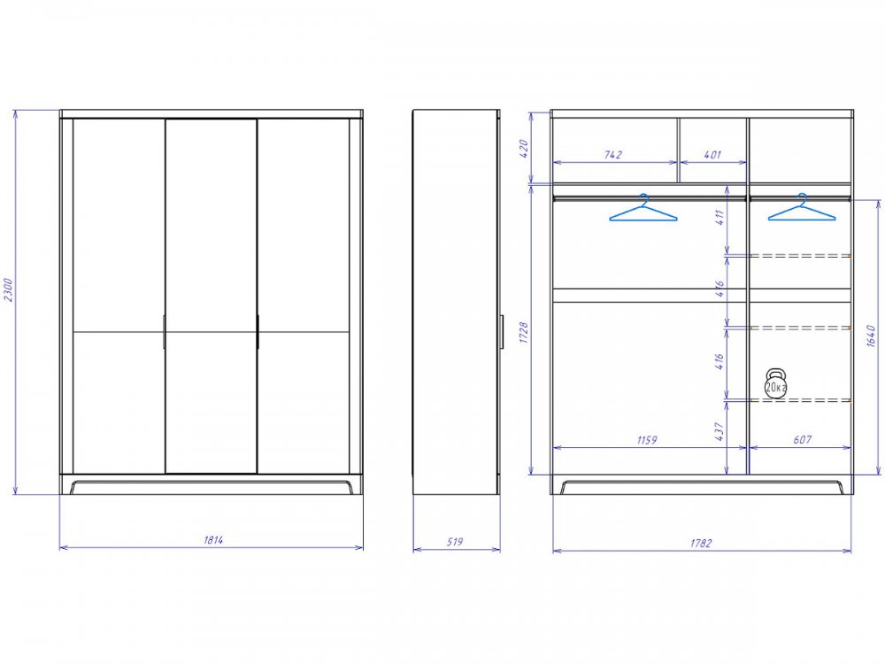 - Шкаф 3-х дверный широкий глухой Юта Дуб Мария
