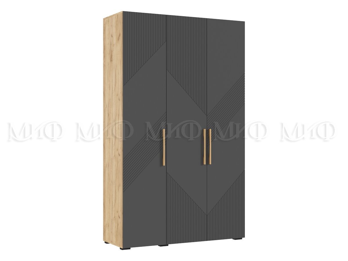 - Шкаф 3-х створчатый (1350) Ирис Браш Графит, Дуб Крафт