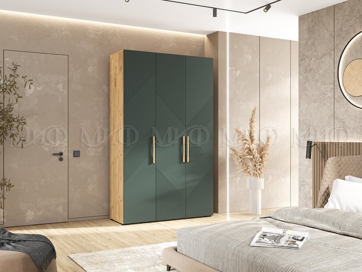 - Шкаф 3-х створчатый (1350) Ирис Браш Мени Грин, Дуб Крафт