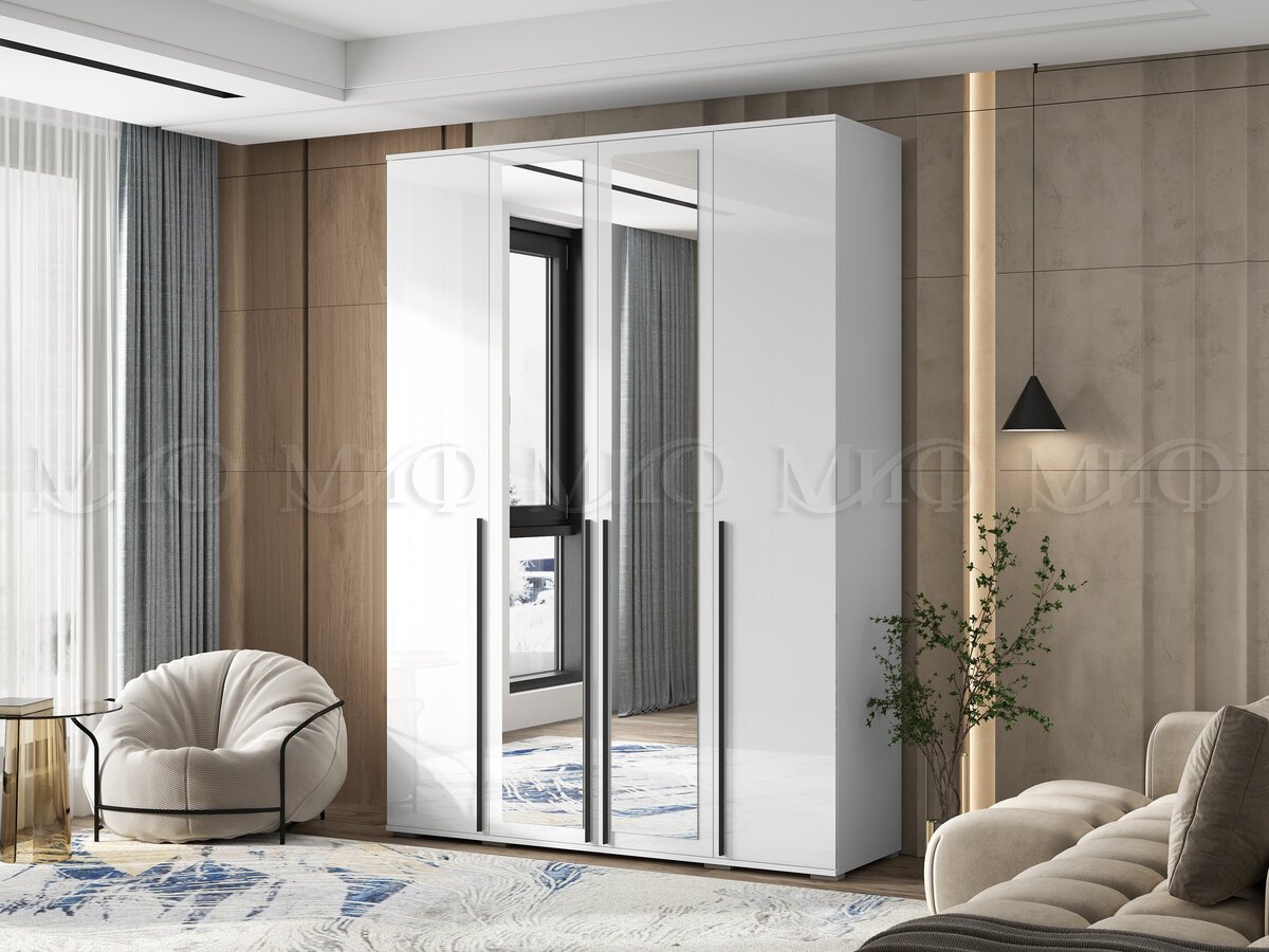 Шкаф 4-х створчатый Норд 1600 с зеркалами белый глянец