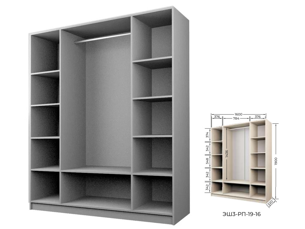 - Шкаф для Одежды Экон ЭШ3-РП-19-16