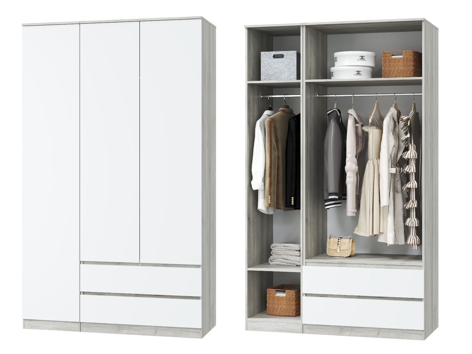 - Шкаф для одежды трехдверный Лори дуб серый, белый