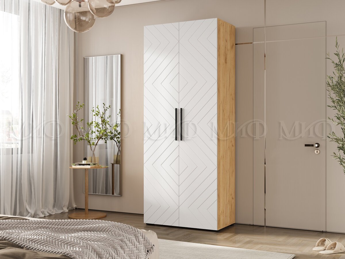 - Шкаф двухстворчатый (900) Флэш Браш Вайт, Дуб Крафт