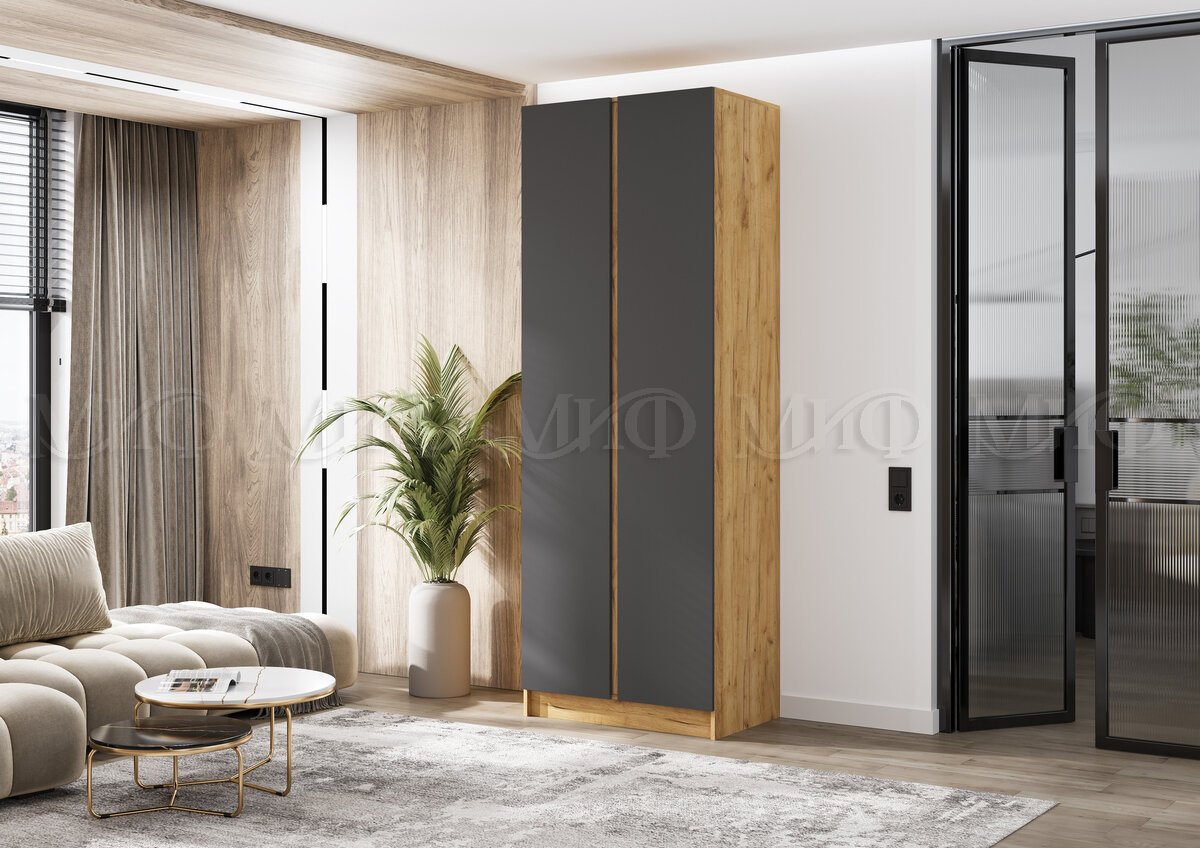 Шкаф двухстворчатый Келвин (800) Графит, Дуб Крафт-вставка дуб крафт