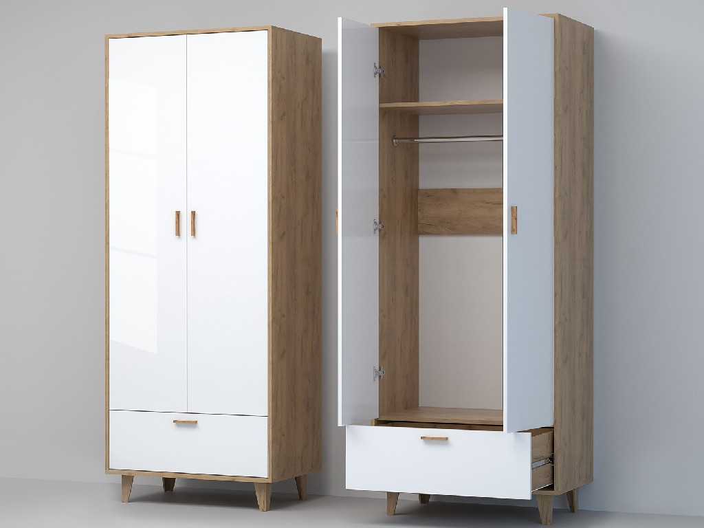 Шкаф Эго ШК-1 дуб крафт золотой/белый глянец на ножках