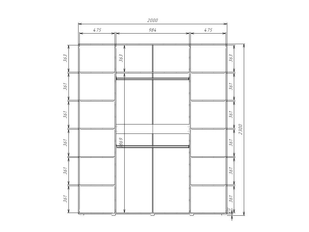 - Шкаф Гранд ГШК/2-23-20-2222 (двери тип 2)