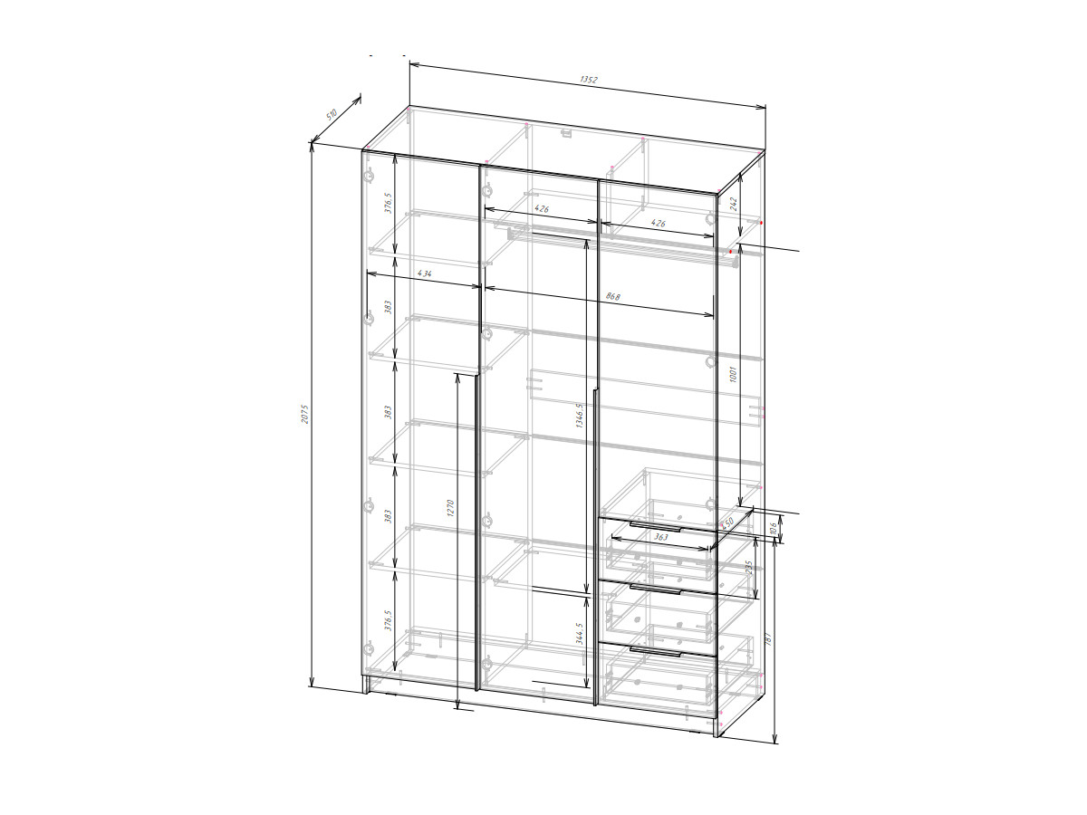 Габариты: Д.1352 х В.2075 х Г.510 мм
