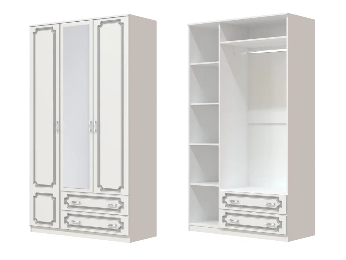 Шкаф ШР-3 платье и бельё с зеркалом Лак Белый жемчуг