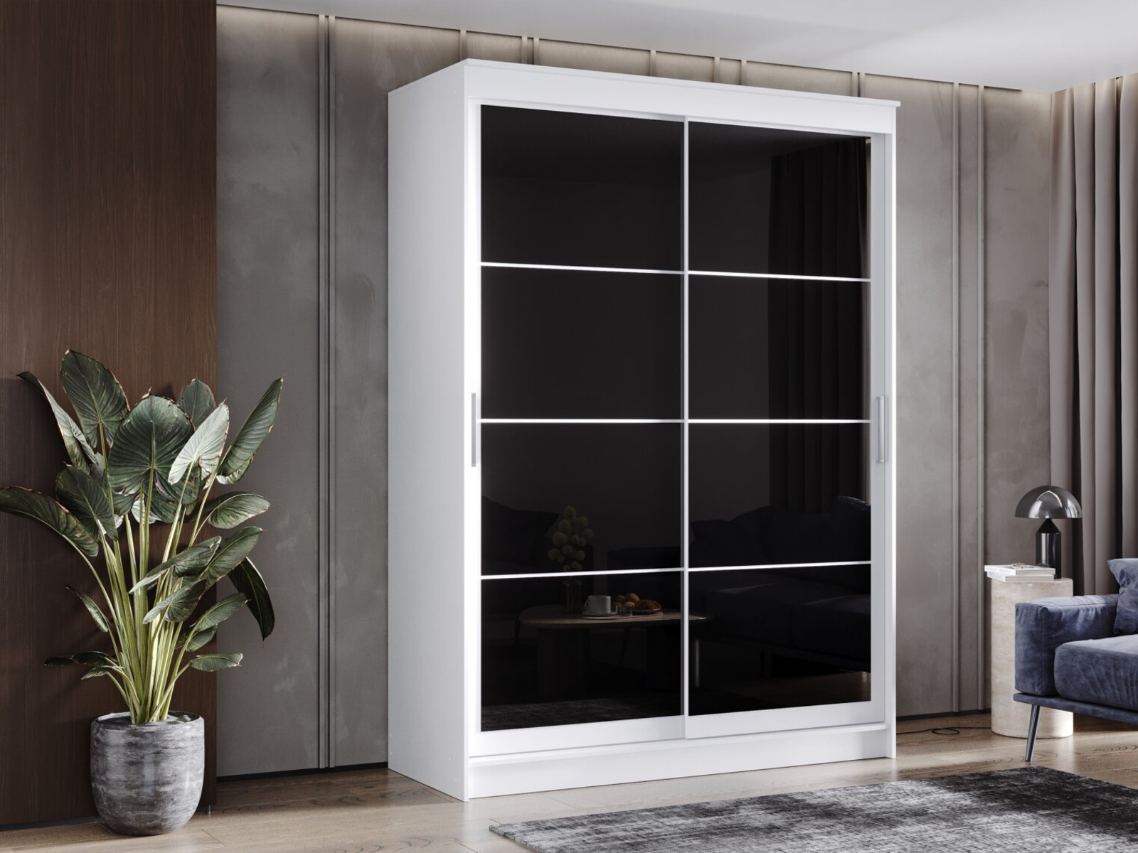 - Шкаф-купе Гранд-1 1600 Белый гладкий-двери Лакобель черный