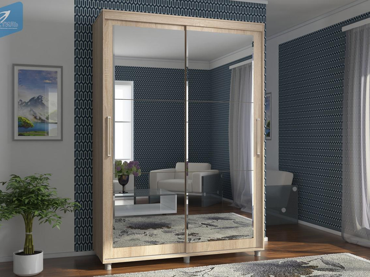Шкаф-купе Комфорт 12 Прайм c прямоугольным зеркалом 1500 сонома