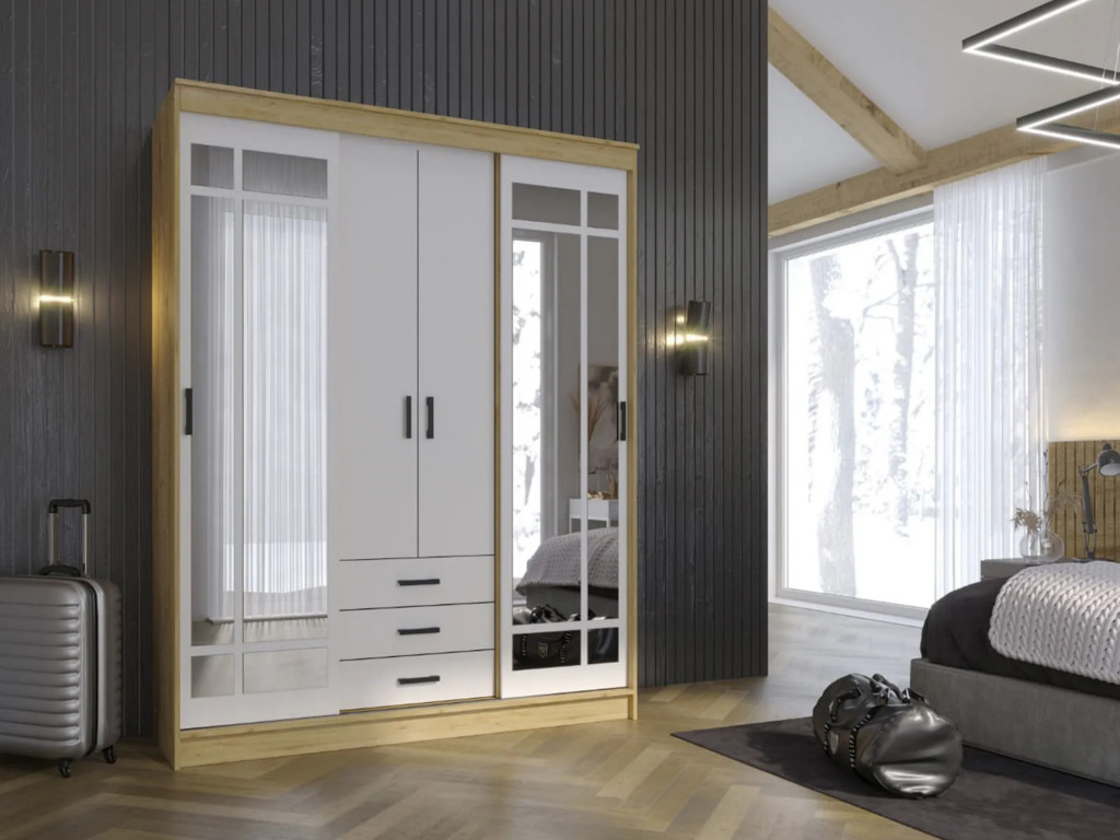- Шкаф купе Лорд Дуб Вотан-Белый гладкий