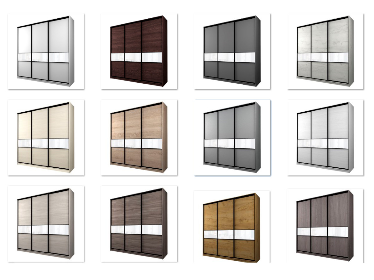 - 3 двери верхняя и нижняя вставка – ДСП 10 мм, центральная – стекло с пленкой Oracal.