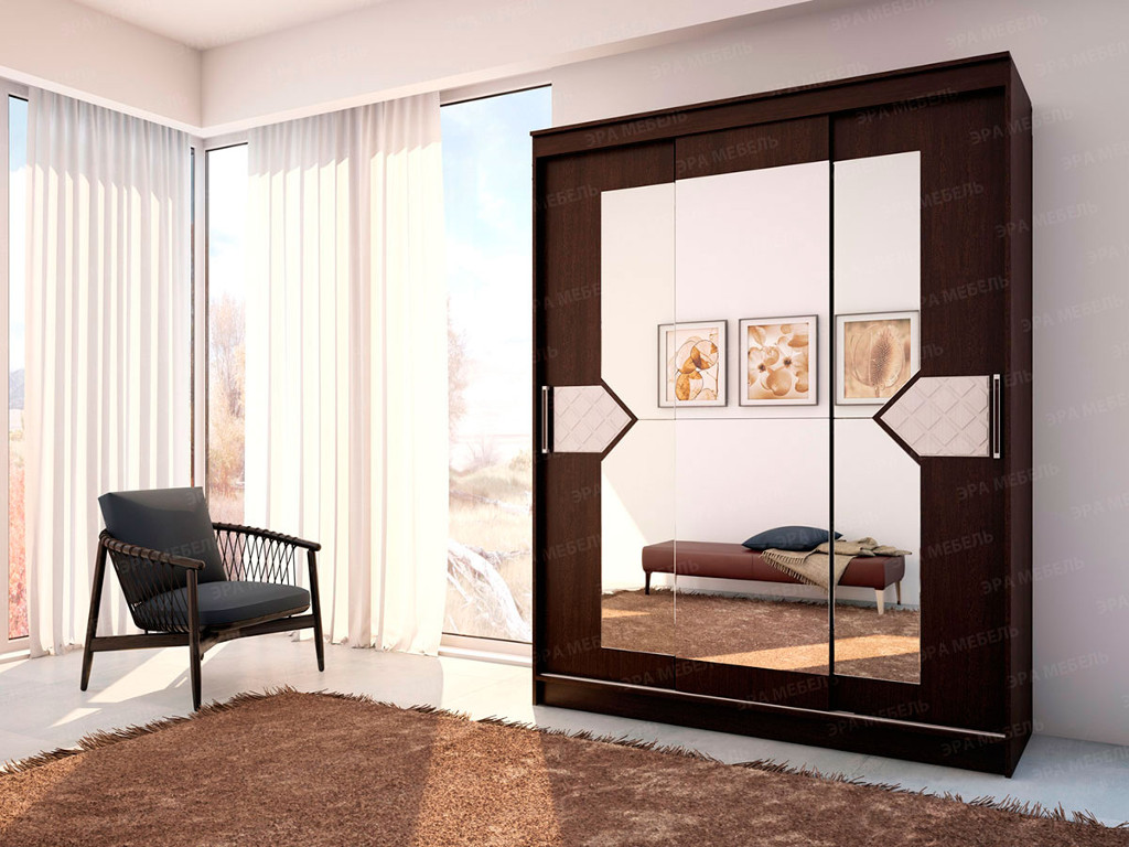 - Шкаф купе Николь-3 венге-лиственница светлая