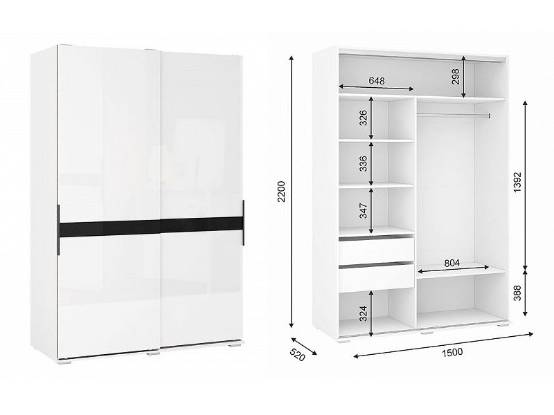 - Шкаф-купе Оскар двухстворчатый белый/белый глянец