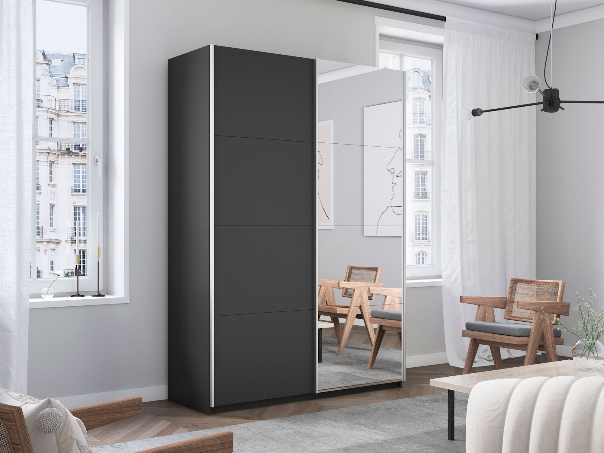 - Шкаф-купе Прайм 2-х дверный 1200 Зеркало/ДСП Серый Диамант