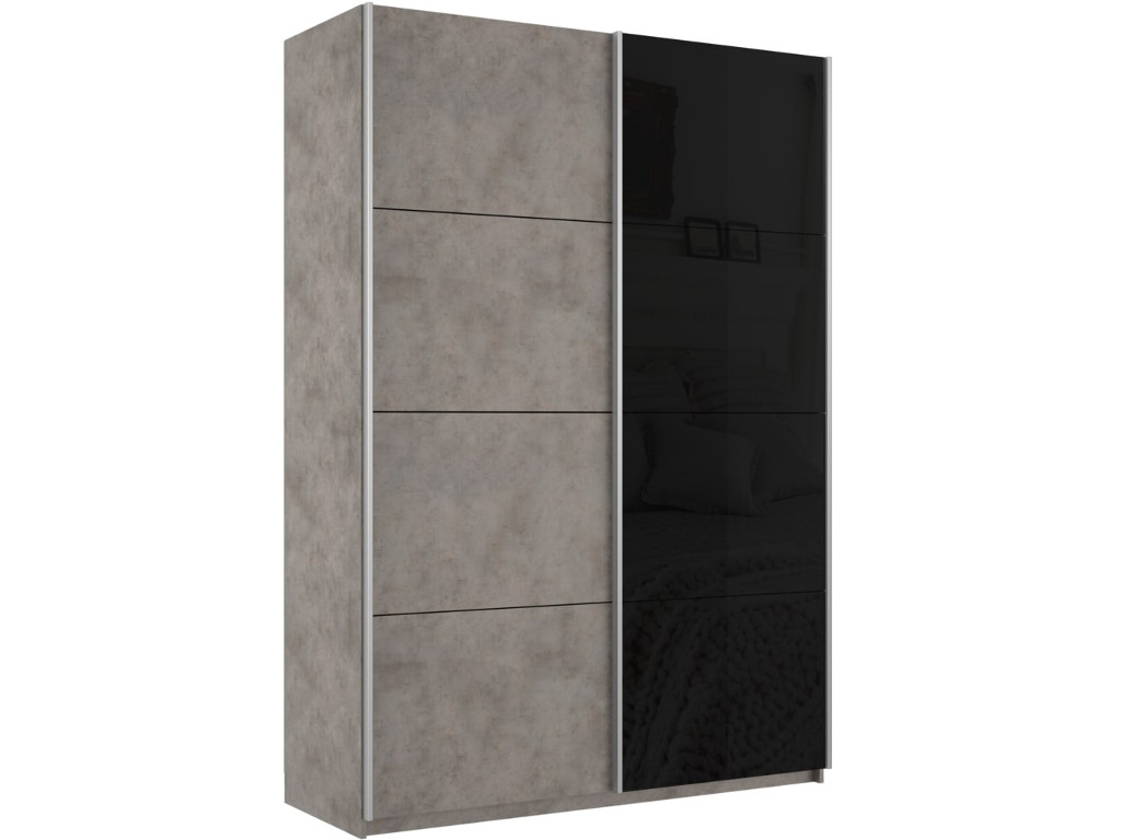 - Шкаф-купе Прайм 2-х дверный 1400 ДСП/Стекло Черное Бетон