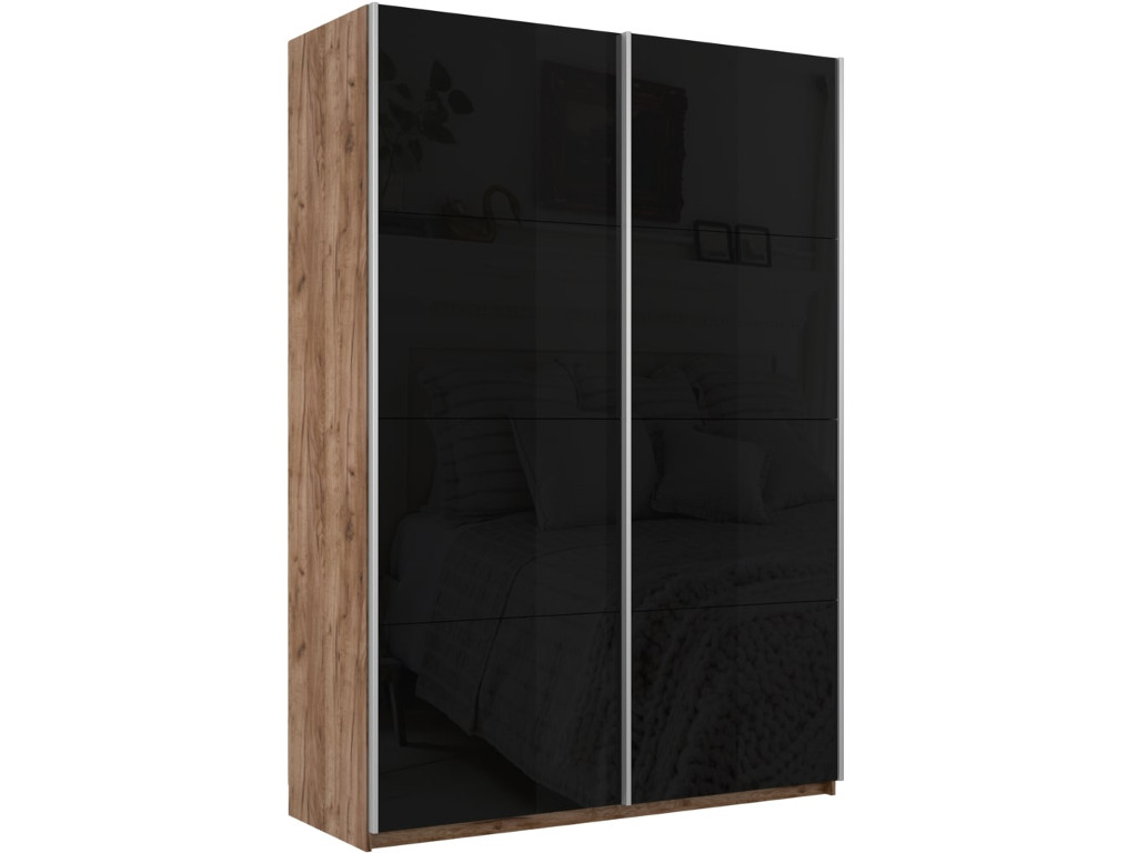 - Шкаф-купе Прайм 2-х дверный 1400 Стекло Черное Крафт табачный