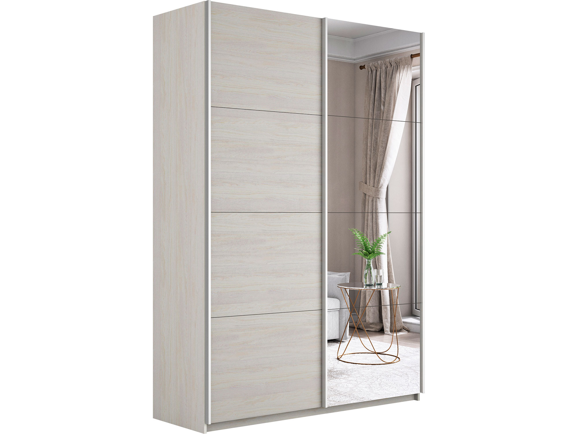 - Шкаф-купе Прайм 2-х дверный 1400 Зеркало/ДСП Ясень Анкор Светлый