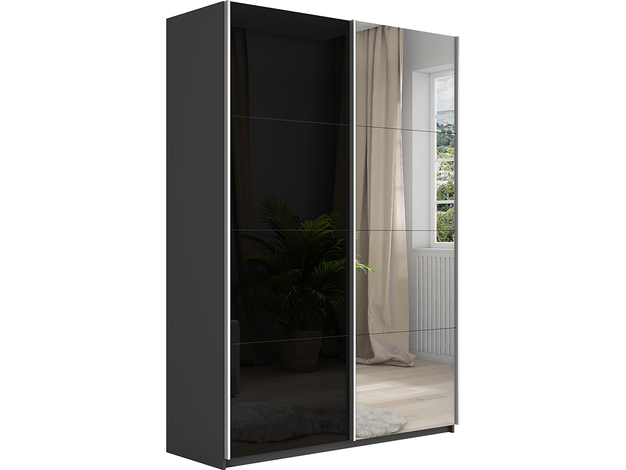 Шкаф-купе Прайм 2-х дверный 1400 Зеркало/Стекло Черное Серый Диамант