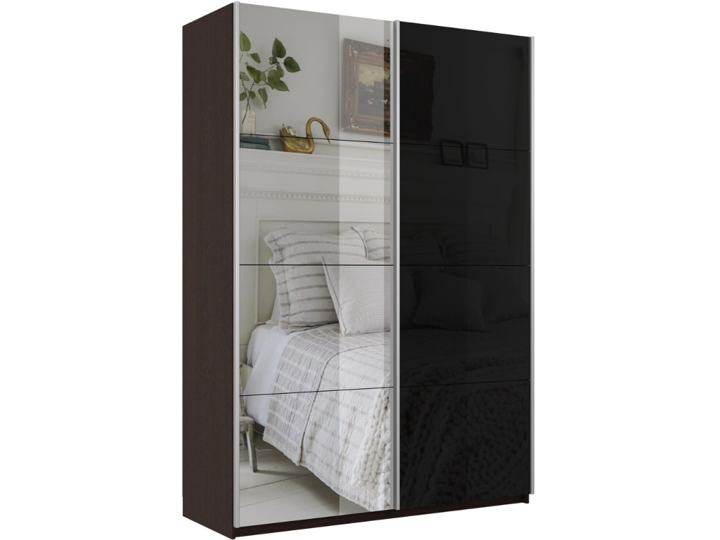 - Шкаф-купе Прайм 2-х дверный 1400 Зеркало/Стекло Черное Венге