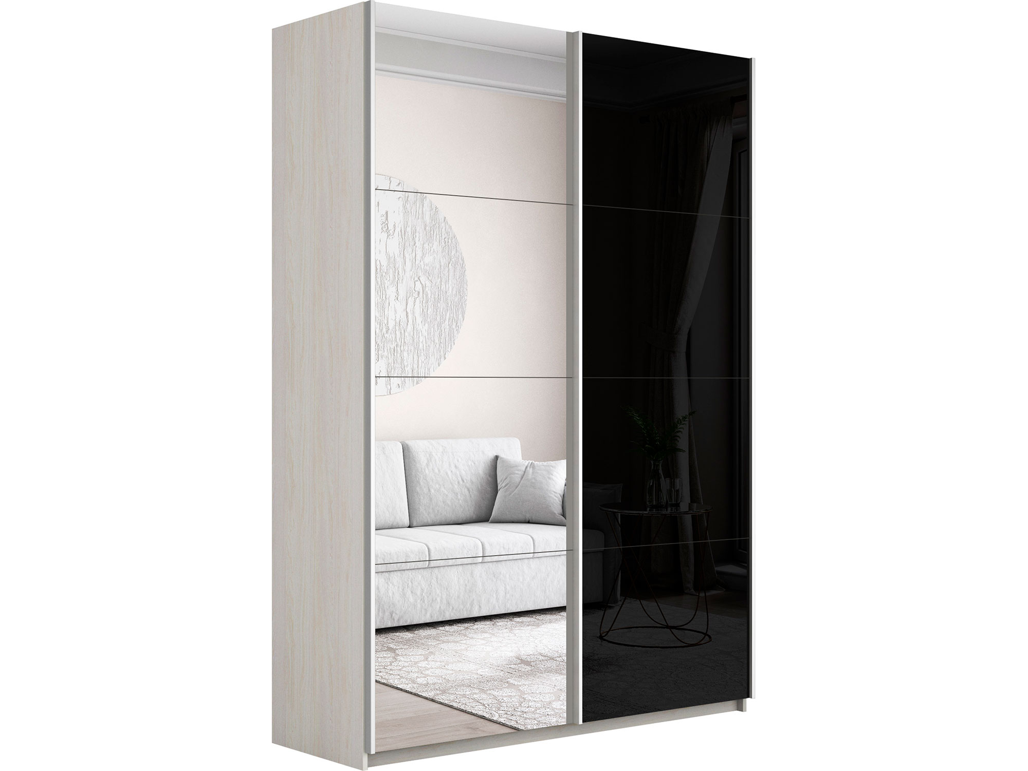 Шкаф-купе Прайм 2-х дверный 1400 Зеркало/Стекло Черное Ясень Анкор Светлый