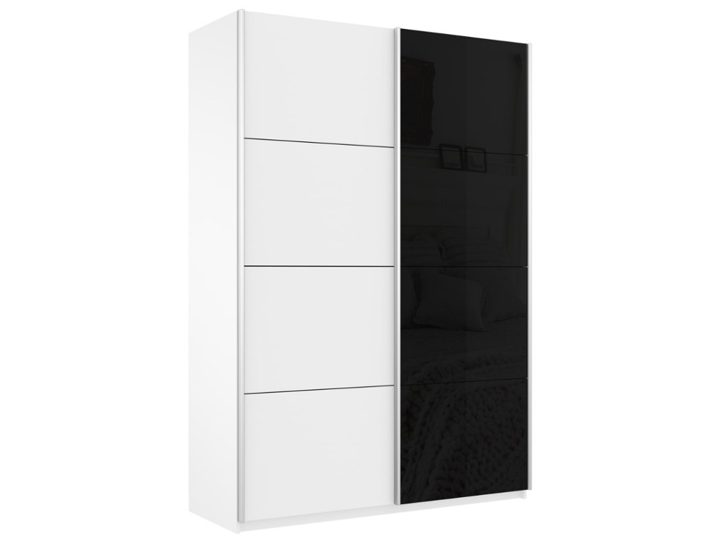 - Шкаф-купе Прайм 2-х дверный 1600 ДСП/Стекло Черное Белый Снег
