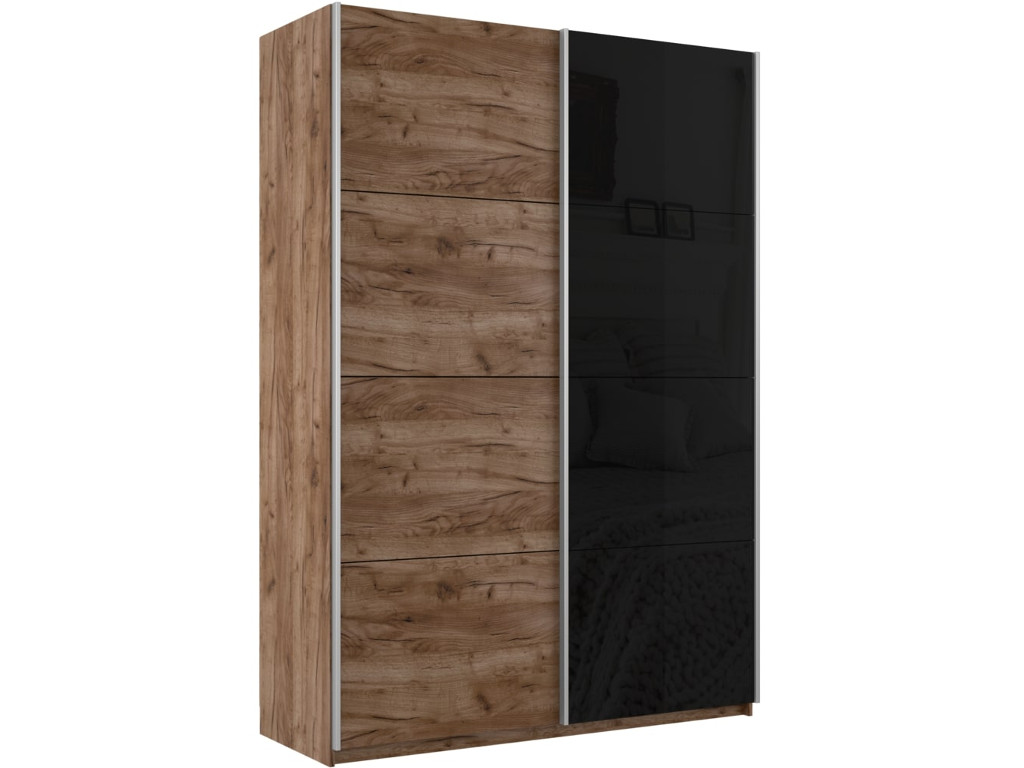 - Шкаф-купе Прайм 2-х дверный 1600 ДСП/Стекло Черное Крафт табачный