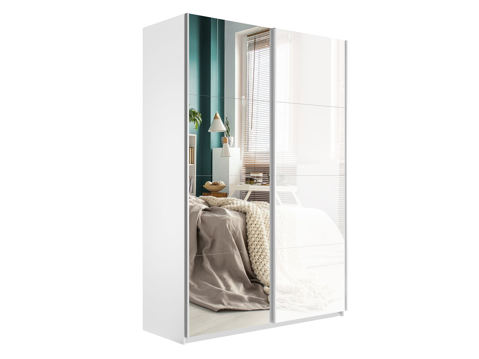 Шкаф-купе Прайм 2-х дверный 1600 Зеркало/Стекло Белое Белый Снег