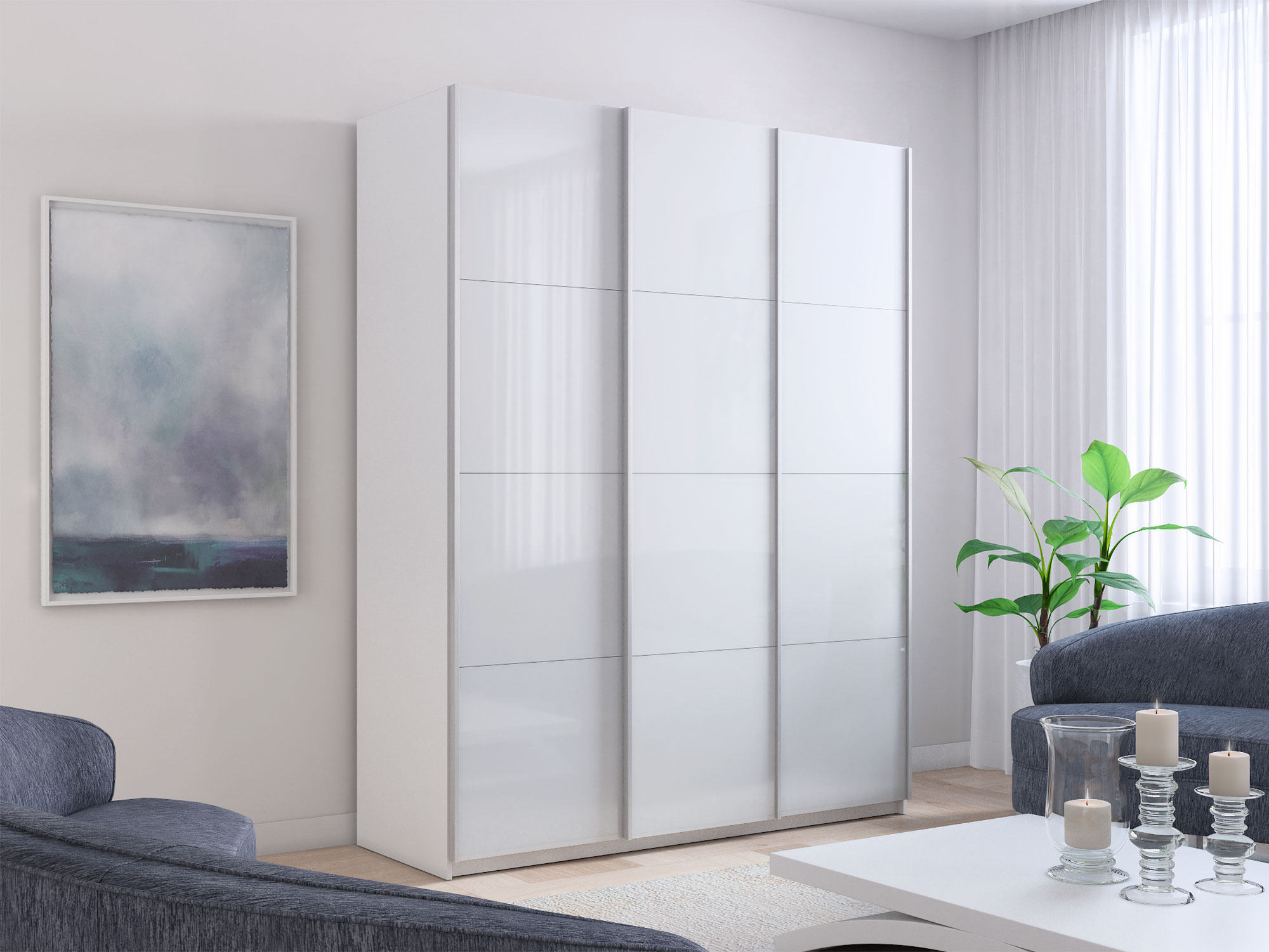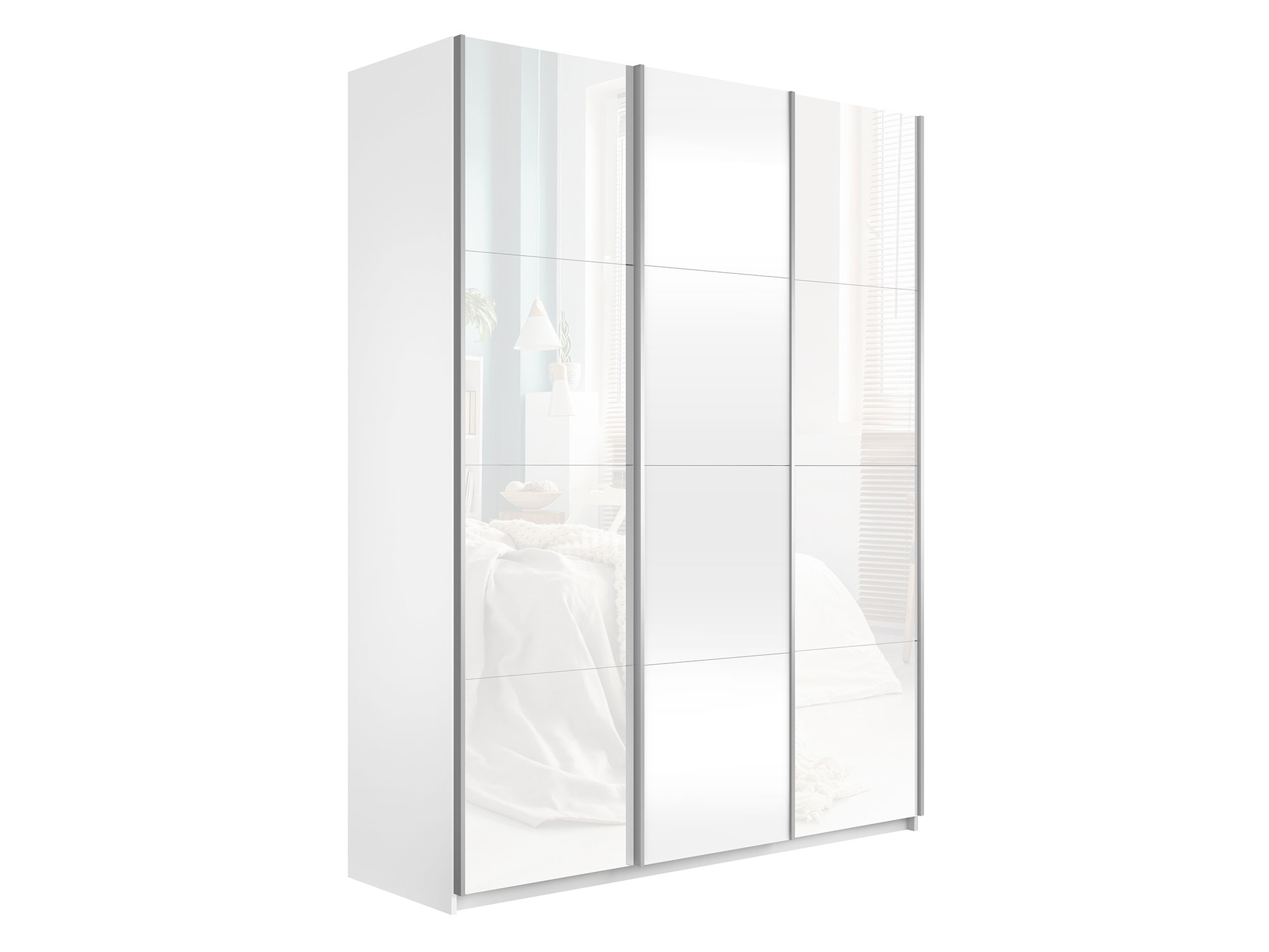 - Шкаф-купе Прайм 3-х дверный 1800 два Стекла Белые/ДСП Белый Снег