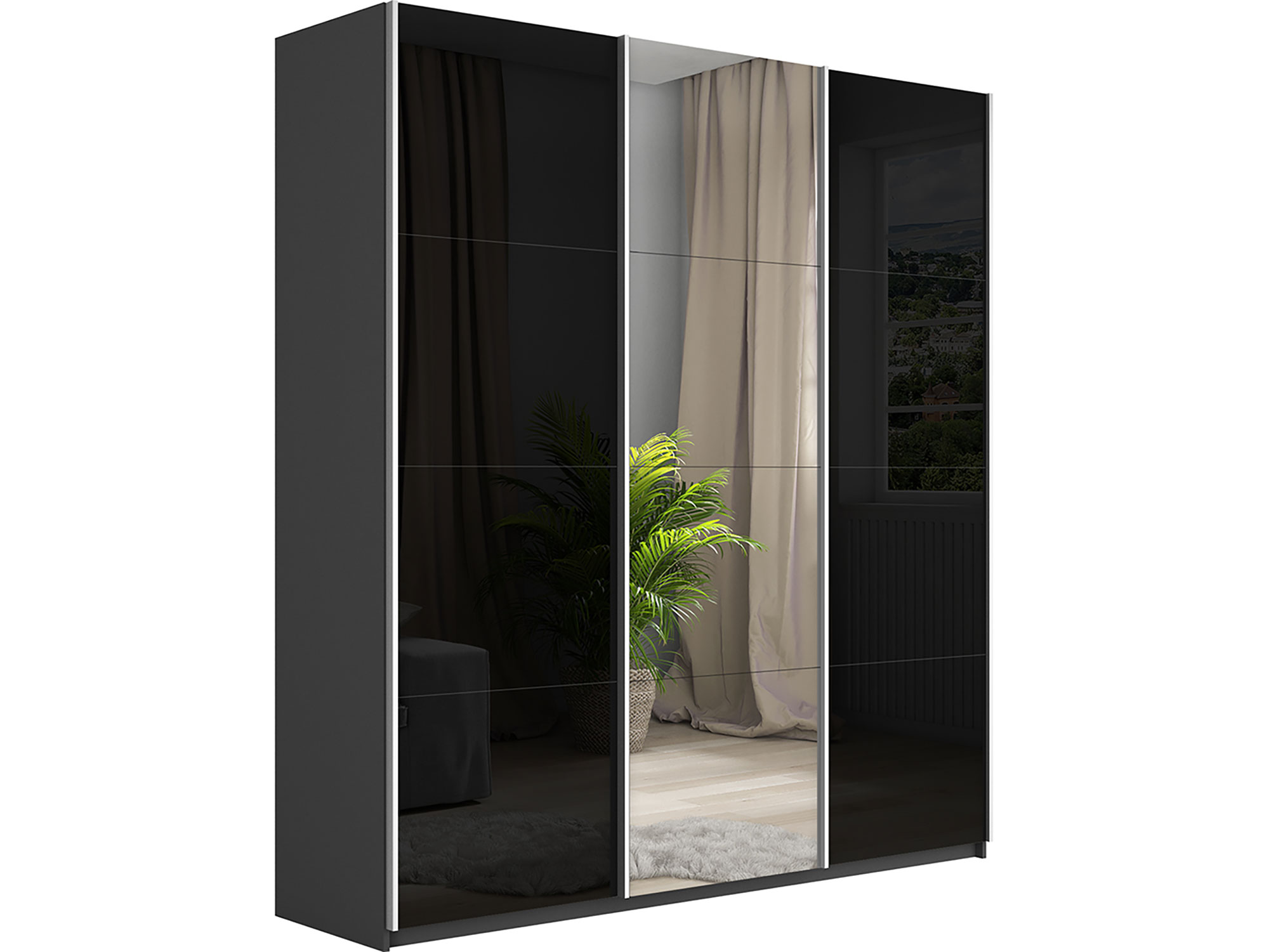 - Шкаф-купе Прайм 3-х дверный 1800 два Стекла Черные/Зеркало Серый Диамант